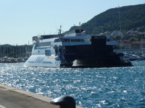 Nous allons quitter la presqu’île où est situé Orebic et pour cela nous empruntons un bateau, ensuite environ 140 kms de route pour rejoindre Split ou nous embarquons pour la traversée de l’Adriatique direction Pescara en Italie.