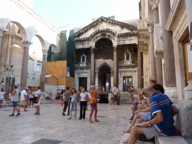 On peut remarquer au font à gauche, un echaffaudage qui en fait cache les travaux de réfection d’un Sphinx vieux de plus de 3500 ans: pas de bol…