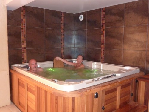 Après un petit coucou à la copine de Muriel et JF en plein déménagement près d’Aurillac, nous sommes arrivés assez tôt à l’hôtel pour que Maric, Mumu et JF puissent profiter du sauna… moi c’est pas mon truc…