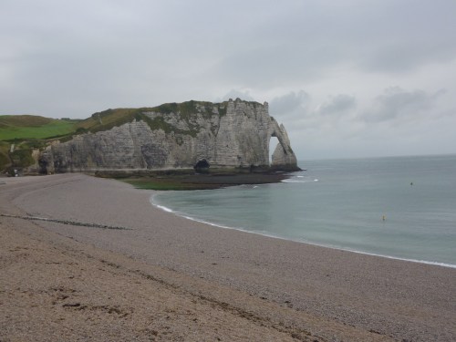 A notre arrivée à Etretat, malgré la fatigue et profitant d’un ciel plus clément, nous allons directement admirer la vue des falaises.