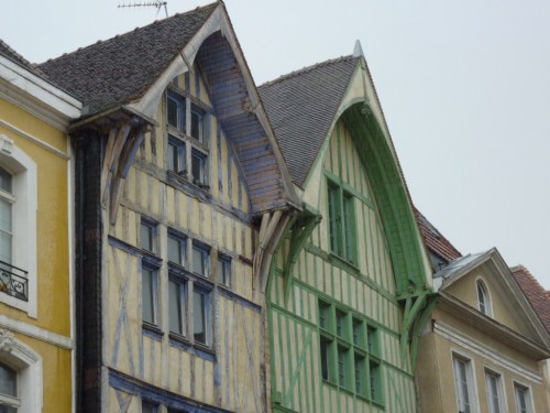 … nous avançons dans le centre historique avec ses belles maisons à colombage et trouvons un resto sympa dans lequel nous pourrons apprécier une des spécialités de la ville: l’andouille de Troyes.