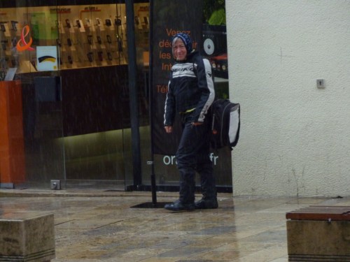 Le soleil de ce matin nous avait rempli d’optimisme et à notre arrivée à Troyes, naïfs que nous sommes, nous avions laissé nos casques attachés sur les motos… vous imaginez la suite…