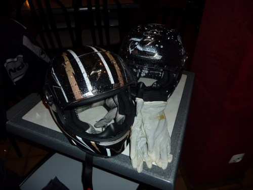Finalement, hier soir, la tempête prévue est arrivée alors que nous venions de regagner nos chambres après avoir déguster un bon pavé de « Salers » en terrasse du petit resto du coin, le vacarme des grêlons tombant sur les capots des voitures garées sous nos fenêtres nous a confirmé que nous avions eu pas mal de chance avec la météo, surtout que nos motos se reposaient au sec dans le garage de l’hôtel.