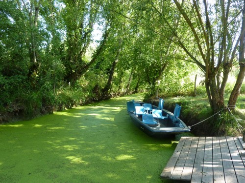 Comme prévu nous sommes allés nous balader dans les marais poitevin, promenade en barque à 10h30, peu de touriste à cette heure là, les canaux ne sont pas encore trop encombrés et on apprécie pleinement le silence tout juste interrompu par le glissement de la barque au milieu des lentilles d’eau.